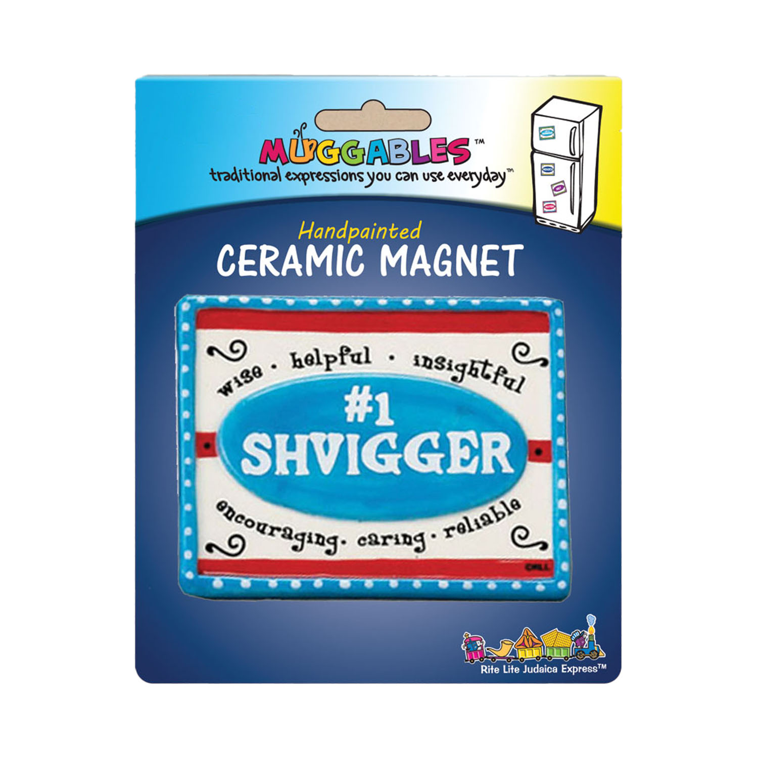 Der liebevoll gestaltete Keramikmagnet „Shvigger“ bringt mit einem Augenzwinkern jiddischen Charme in dein Zuhause. Das Wort „Shvigger“ bedeutet „schlaue, hilfsbereite und weise Person“ – die englische Übersetzung „Wise, helpful, insightful“ ist ebenfalls auf dem Magnet zu lesen.