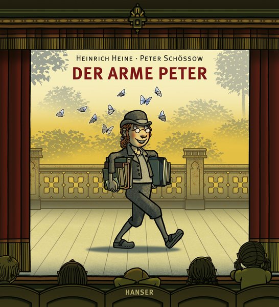 Endlich ist der Abend gekommen, auf den sich alle vorbereitet haben: Im Theater wird Heinrich Heines "Der arme Peter" gespielt - von Kindern für Kinder. Die Schauspieler machen sich schon für ihren Auftritt fertig, während die Zuschauer ins Theater strömen. Der Vorhang geht auf, und es beginnt die Geschichte, wie Peter die Grete nicht bekommt. Das ist dramatisch, aufregend und manchmal sogar komisch. Den Zuschauern sieht man das an, sie reagieren überrascht, entsetzt oder amüsiert. In seinem Bilderbuch erzählt Peter Schössow die alte Geschichte von der Liebe und dem Verlassenwerden neu. Und der Betrachter seiner Bilder erlebt ganz unmittelbar das Wechselspiel der Gefühle zwischen Bühne und Publikum.