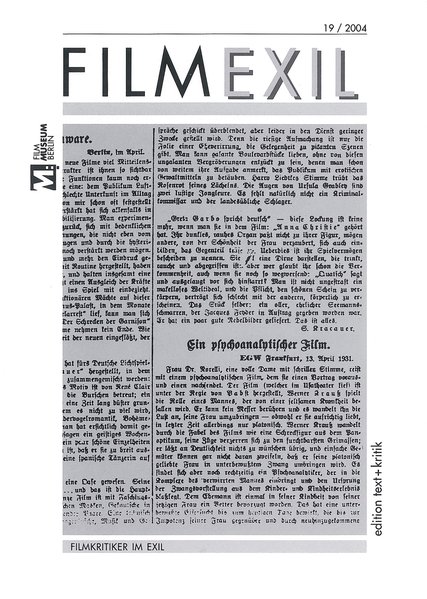 Nr. 19: Filmkritiker im Exil. Nr. 20: Filmexil Moskau