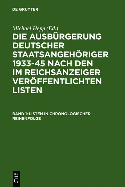 1: 1985. Listen, 724 S. 199,65; 2: 1985. Namensregister, 356 S., 199,95; 3: 1988, Register der Geburtsorte und letzten Wohnorte, 296 S., 209,00- Autor: Hepp, Michael