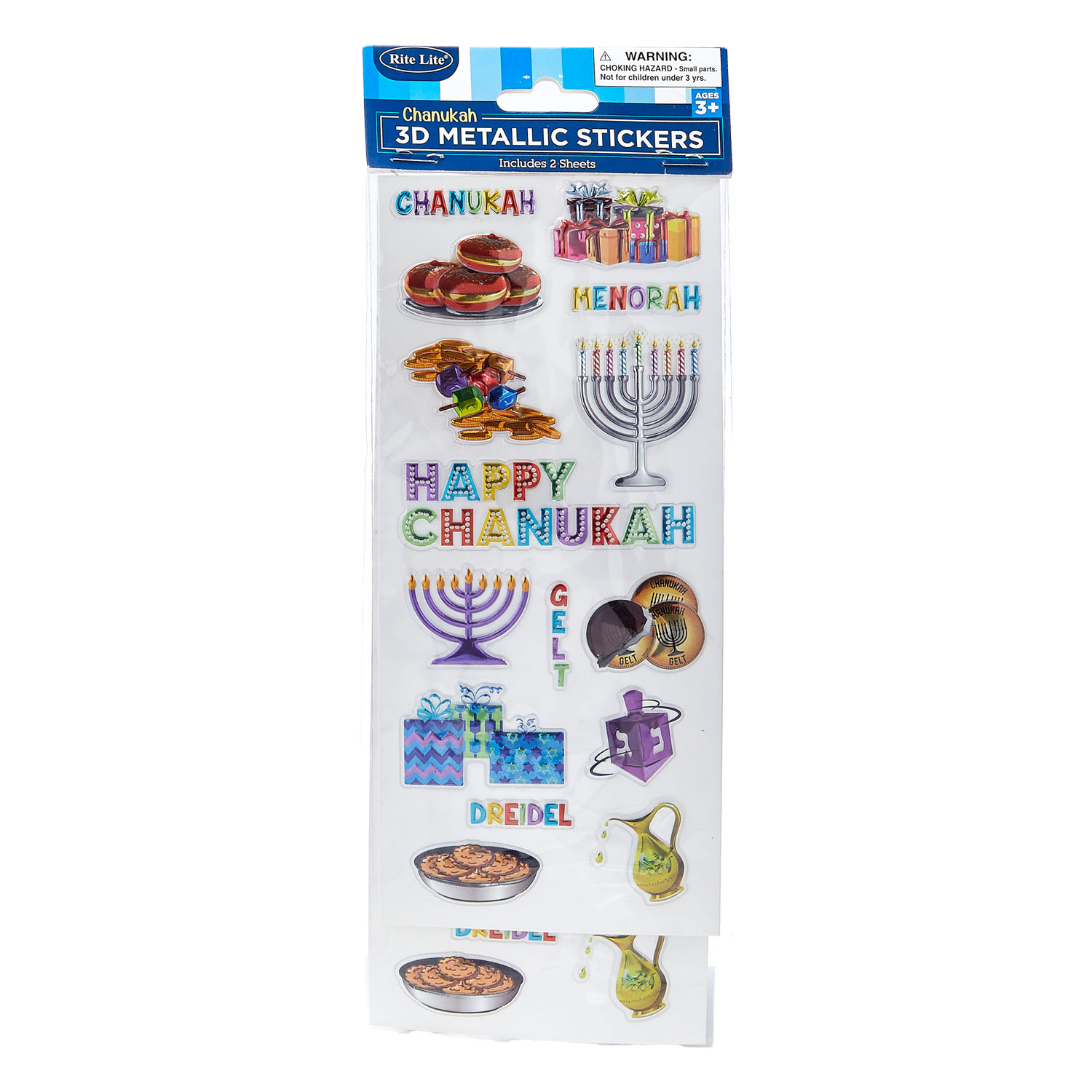 Sticker Chanukka 3D, metallic, 2 Bögen