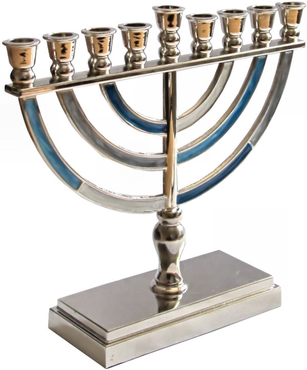 Die blau/weiße Chanukkia aus Aluminium