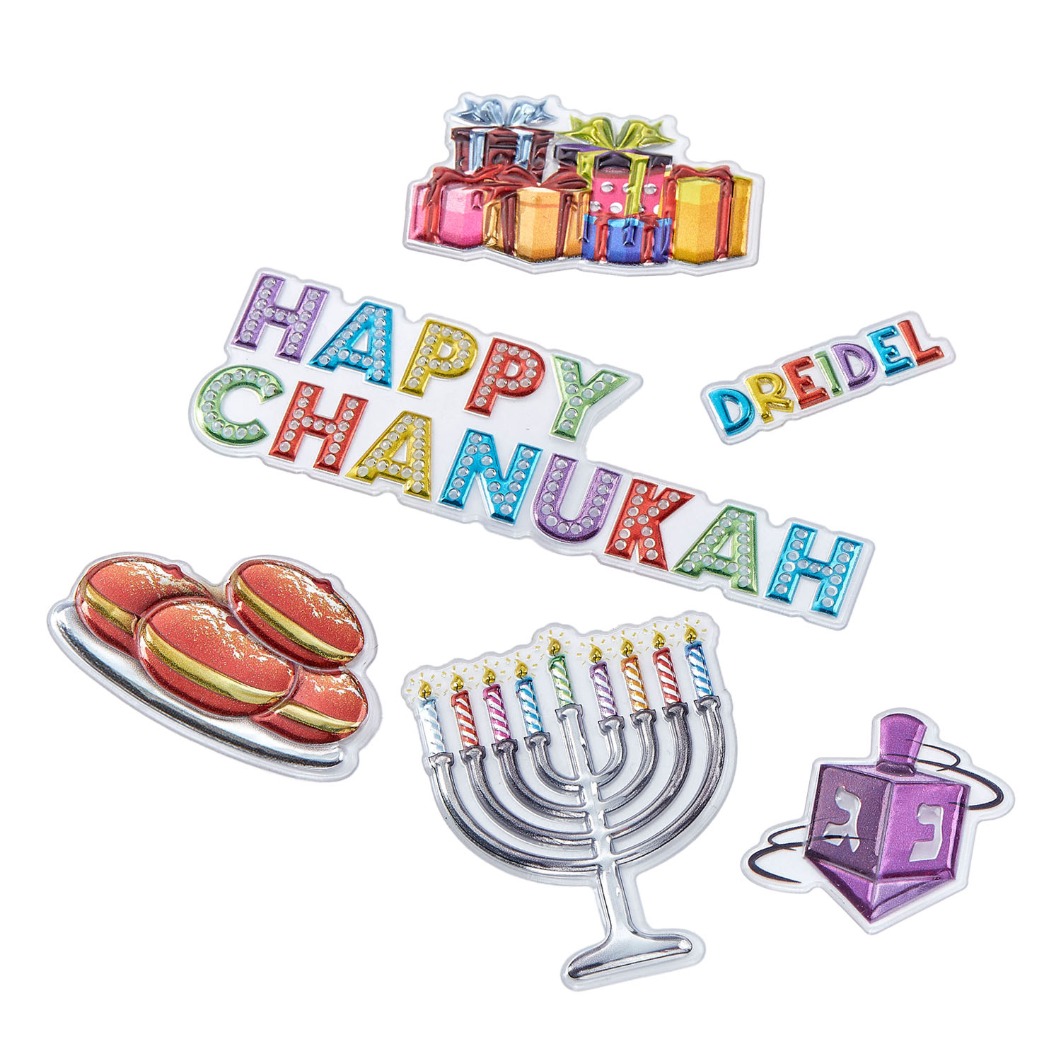 Mit diesem Chanukka Sticker-Set mit 3D-Effekt wird Basteln, Dekorieren und Schenken noch schöner! Die hochwertigen Aufkleber zeigen beliebte Chanukkah-Motive wie Dreidel, Chanukkia, Davidstern und festliche Symbole in leuchtenden Farben und mit plastischer Optik.