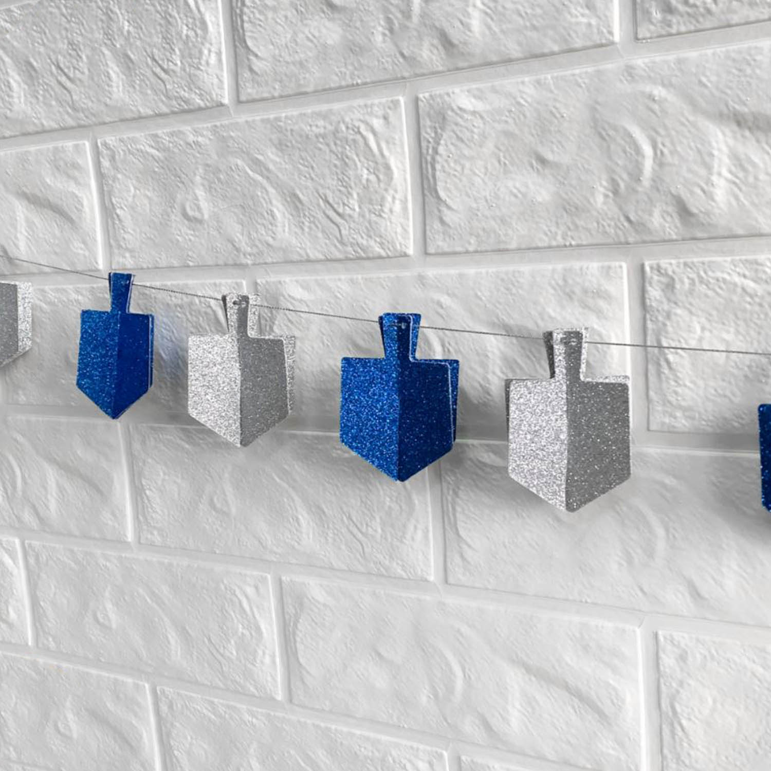 Bringen Sie festliche Chanukka-Stimmung in Ihr Zuhause mit dieser funkelnden 3D Dreidel-Girlande in blau und silber. Die glitzernden Dreidel-Anhänger aus leichtem Material reflektieren das Licht wunderschön und schaffen eine warme, fröhliche Atmosphäre – perfekt für Chanukka-Feiern, den Familienabend oder als Dekoration im Fenster oder an der Wand.