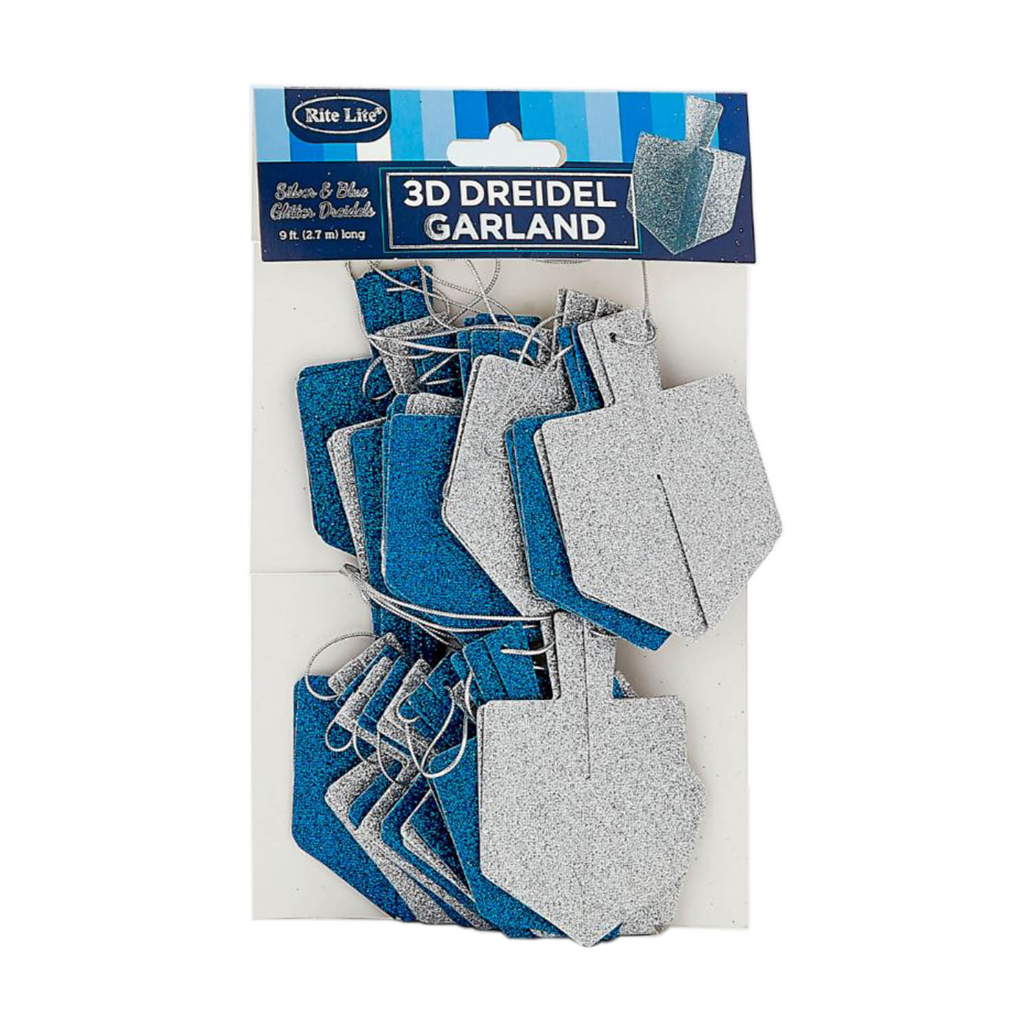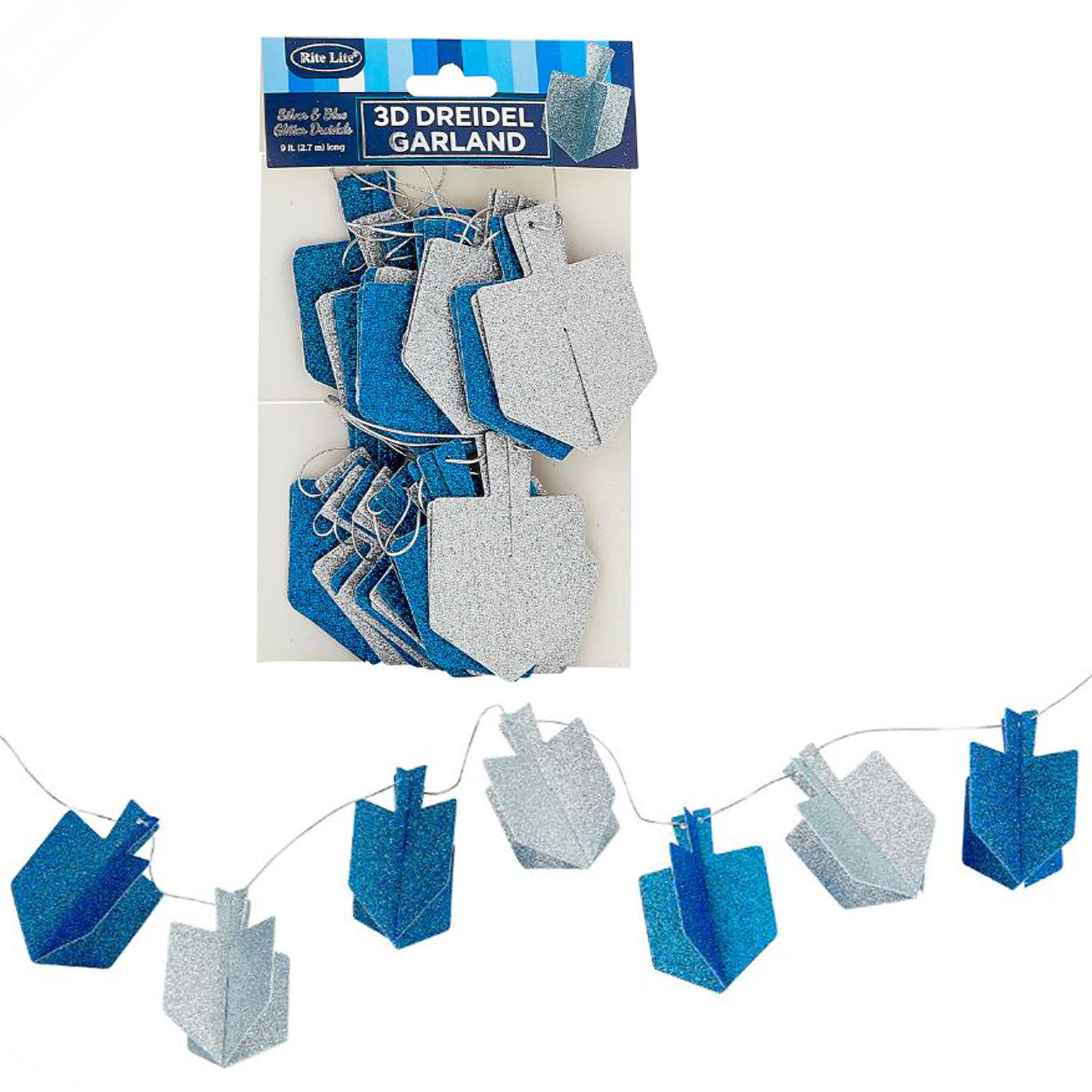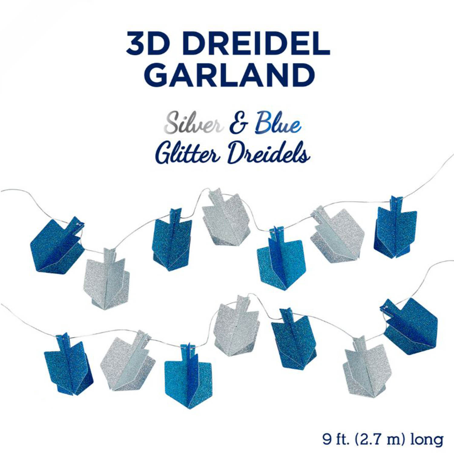 3D Dreidel Glitzer Girlande, blau/silber