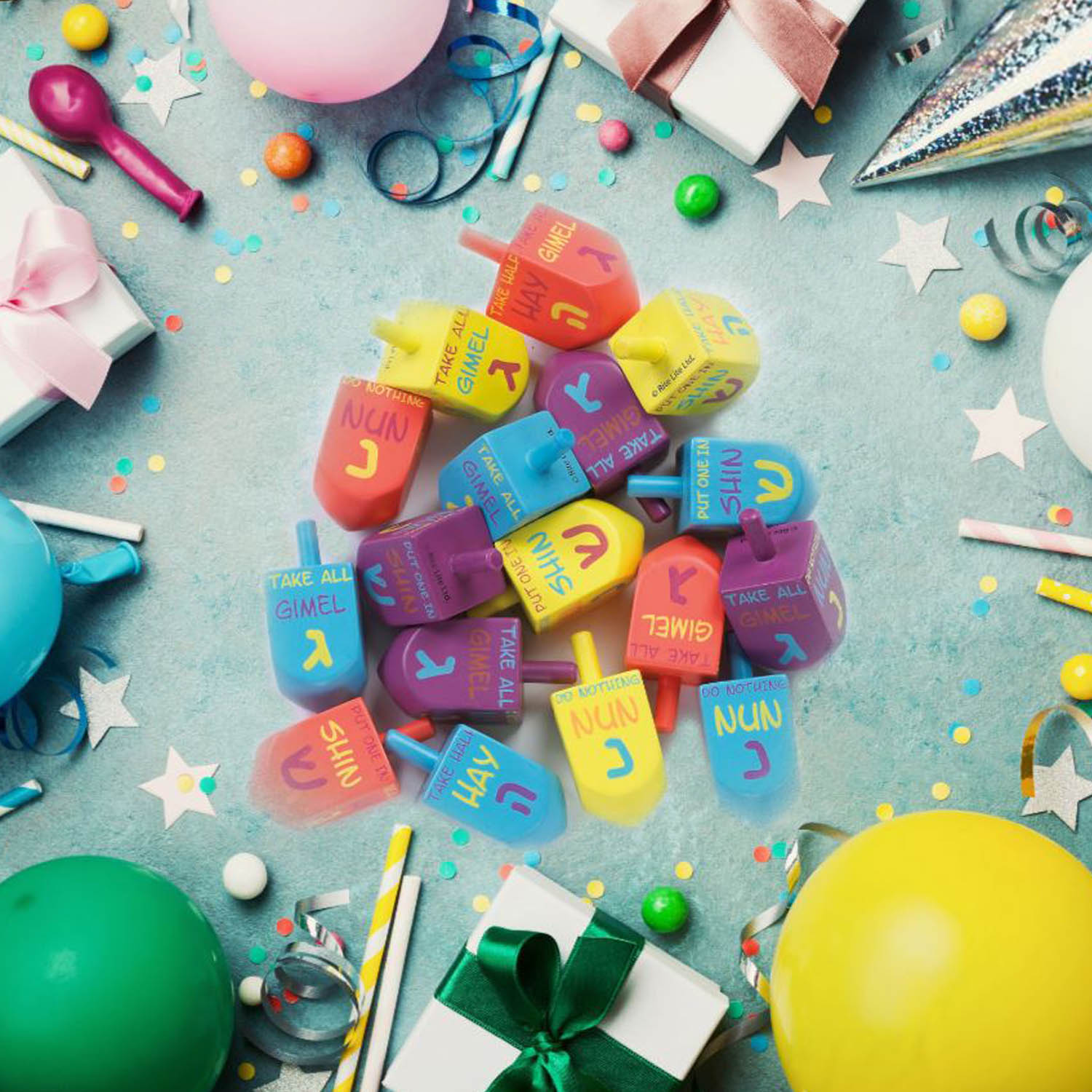 Die bunten Farben sorgern für noch mehr Spaß beim Drehen und Spielen mit dem Dreidel: