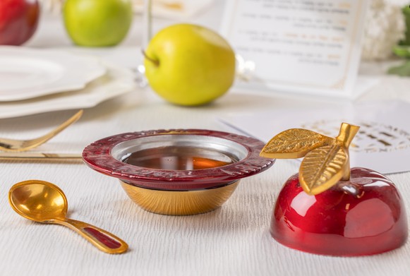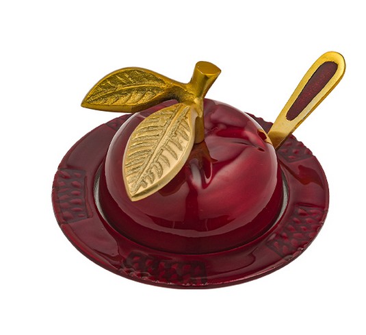 Verleihen Sie Ihrem Rosch HaSchana-Fest einen süßen und festlichen Touch mit diesem Honiggefäß in Apfelform. Der gold-rote Apfel symbolisiert Segen, Süße und Gesundheit für das neue Jahr. Mit dem praktischen Löffel lässt sich Honig stilvoll servieren – perfekt für den festlichen Tisch oder als Geschenk für Familie und Freunde.