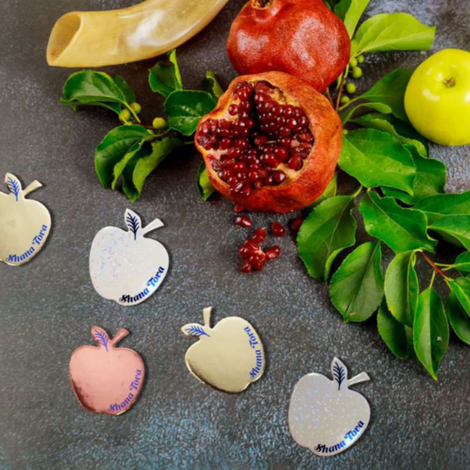 Gefertigt aus Papier mit edler Glanzfolie in den Farben Rosé, Gold und Weiß, bringen sie eine elegante, moderne Note auf jeden Festtisch. Ideal als Streudeko, Platzkartenverzierung oder liebevolles Detail auf der Rosch HaSchana-Tafel.