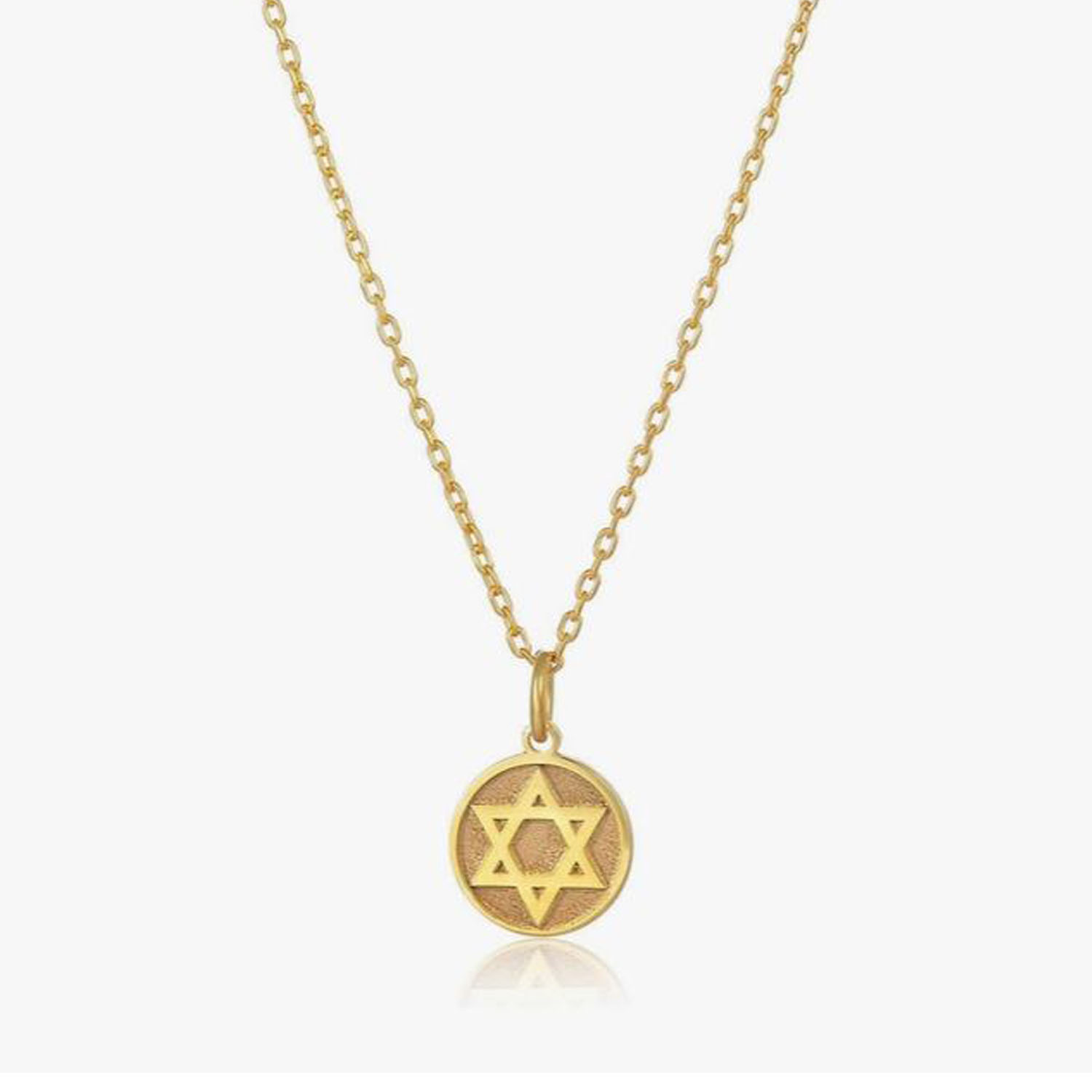 Diese elegante Halskette mit Davidstern-Medaillon vereint Tradition, Schutzsymbolik und modernes Design. Der fein gearbeitete Anhänger in warmem Gelbgold-Ton ist nicht nur ein modischer Blickfang, sondern auch ein starkes Zeichen jüdischer Identität und Verbundenheit.